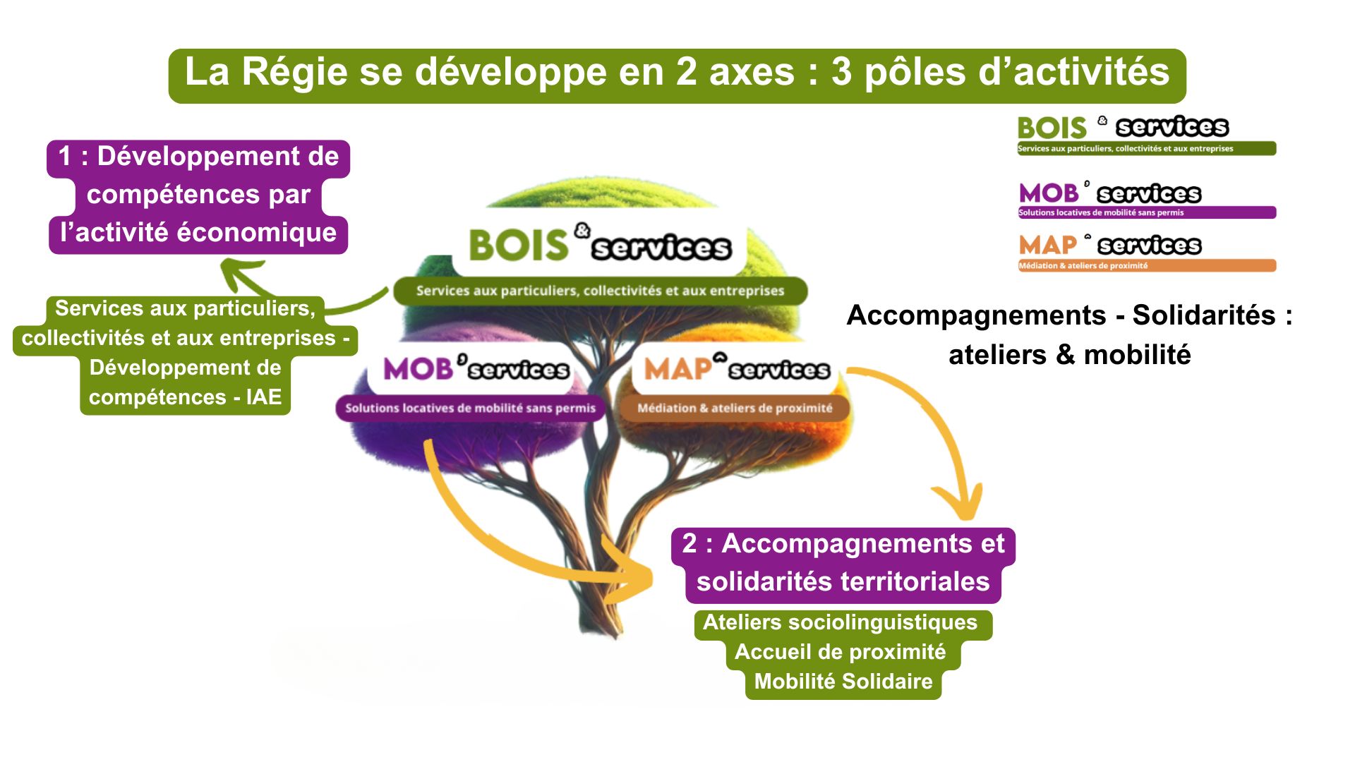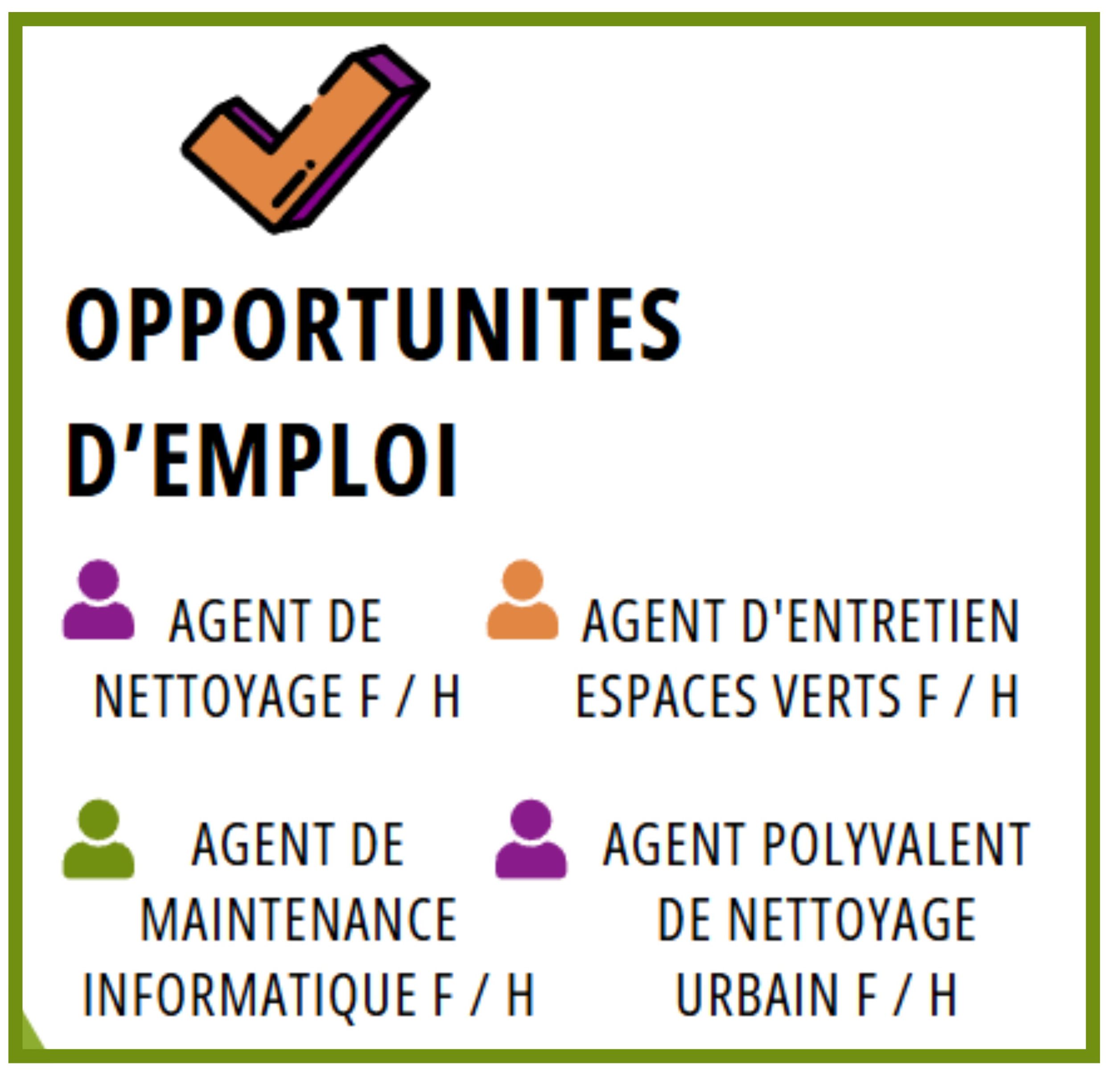 Elle emploie des habitants en parcours d’insertion pour réaliser des services utiles (nettoyage, entretien des espaces verts, petits travaux, gestion des déchets, médiation, etc.) tout en les accompagnant vers un emploi durable.