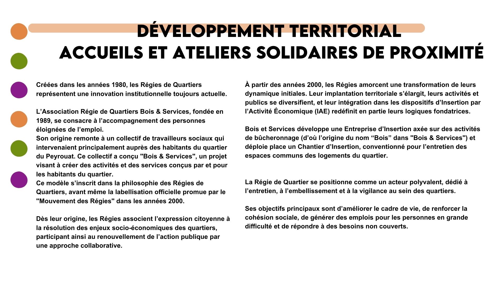 Notre Accompagnateurs Socioprofessionnels (ASP) assure le suivi des salariés en transition. Cet accompagnement vise à surmonter les obstacles tels que le logement, la mobilité ou l’accès aux droits, tout en identifiant leurs savoir-faire et savoir-être. Il permet également d’évaluer et de renforcer leurs compétences afin de favoriser leur autonomie. Tout au long de leur parcours à la Régie, les salariés sont encouragés à prendre des initiatives, à construire leurs projets et à gagner en confiance.